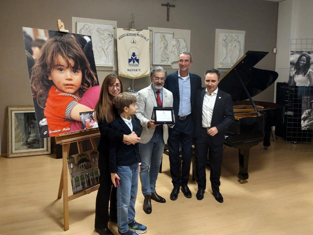 L’inaugurazione della mostra, poi, è stata l’occasione per il sindaco Marco Scazzosi di consegnare a Ibrahim Malla una targa per celebrare l’importante risultato raggiunto, insieme ad un ricordo della serata che è stato dato anche al maestro Alberto Lodoletti.