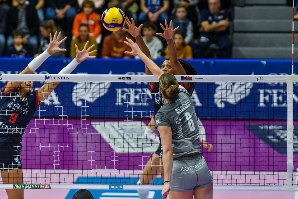 Reale Mutua Fenera Chieri: Giannelli (L2) ne, Spirito (L), Skinner 22, Lyashko 2, Alberti 4, Van Aalen 1, Anthouli 2, Buijs 8, Gicquel 6, Rolando, Carletti, Gray 3, Omoruyi 5, Guiducci. All. Bregoli, 2° Rostagno. Battute errate 5. Vincenti 5. Muri: 5.