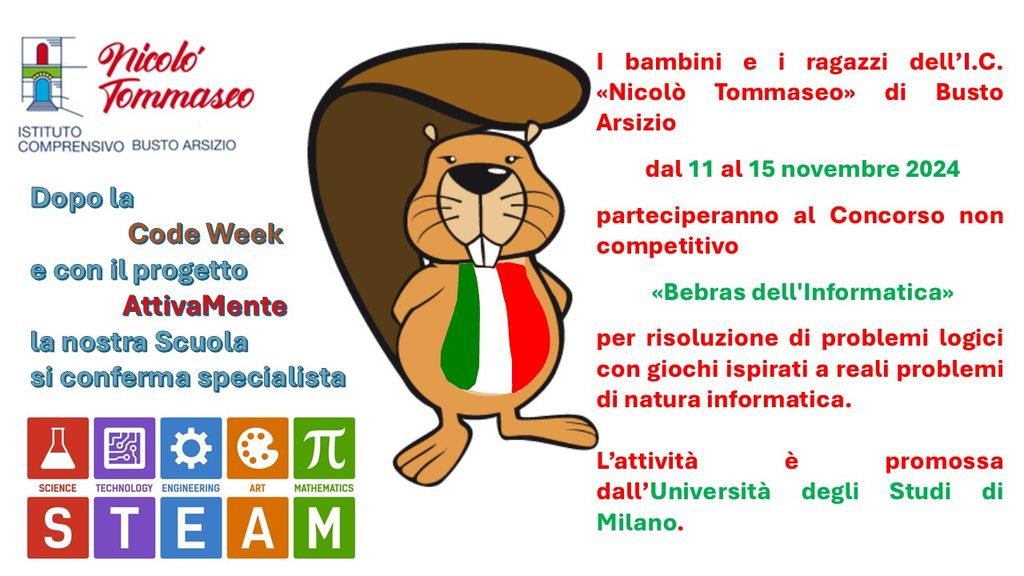 Difatti, i bambini delle classi quarte e quinte della Primaria e i ragazzi della secondaria di primo grado dall'11 al 15 novembre prenderanno parte al Concorso non competitivo «Bebras dell'Informatica» per risoluzione di problemi logici con giochi ispirati a reali problemi di natura informatica. L’attività è promossa dall’Università degli Studi di Milano.