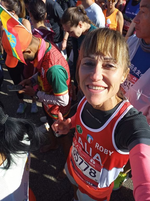 In sintesi: «Fino al giorno prima sono stata agitatissima. Anche perché, a causa di un contrattempo in famiglia, sono dovuta partire da sola. Poi è subentrata la calma, anche per l’atmosfera rilassata che c'era tra i runner. Prima ho pensato “partecipiamo”, poi “arriviamo fino in fondo”, dopo ancora “scendiamo sotto le quattro ore”». Missione ampiamente compiuta ma, al di là del cronometro, a distanza di qualche giorno, è altro a rimanere negli occhi e nel cuore: «Poco dopo la partenza, terminato il ponte da Verrazzano, dove non ci sono spettatori, il pubblico ti sostiene incessantemente, in certi tratti sembra che ti spinga. Avevo una canottiera dalla quale si capiva chiaramente che sono italiana e che mi chiamo Roberta. Sentivo gridare “Roby Roby”. Alla partenza avevo accanto a me un corridore etiope. L’ha fatta tutta a piedi nudi (foto sotto). Gli aneddoti sono tantissimi, non riesco a smettere di raccontare. E non lo nascondo: quando ho tagliato il traguardo qualche lacrima è scappata».