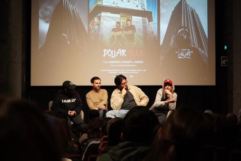 One Dollar Slice, il docufilm di Andrea Crespi e Waro, ieri sera ha animato lo schermo del Cinemino di Milano in una serata riservata a pochi, selezionati spettatori (foto in fondo). Questo breve ma intenso viaggio cinematografico, diretto da Stefano Bosatelli, ha trasportato il pubblico tra le strade di New York e Miami, dove i due artisti hanno esplorato le radici della loro arte iper-contemporanea.