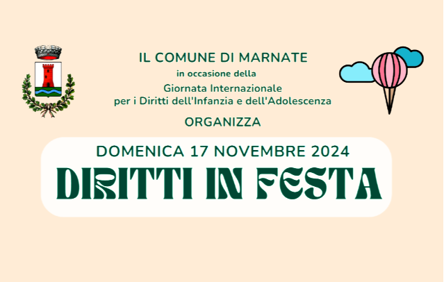 Sarà una vera e propria festa per celebrare i diritti dell’infanzia e dell’adolescenza quella organizzata domenica 17 novembre dall’amministrazione di Marnate, in collaborazione con Scuola dell'Infanzia S.Luigi, Il Girasole di Fra, Tip Top Tennis, Totem e Energicamente, che ha voluto dar vita a una giornata dedicata ai giovani coinvolgendo le realtà che quotidianamente operano sul territorio.