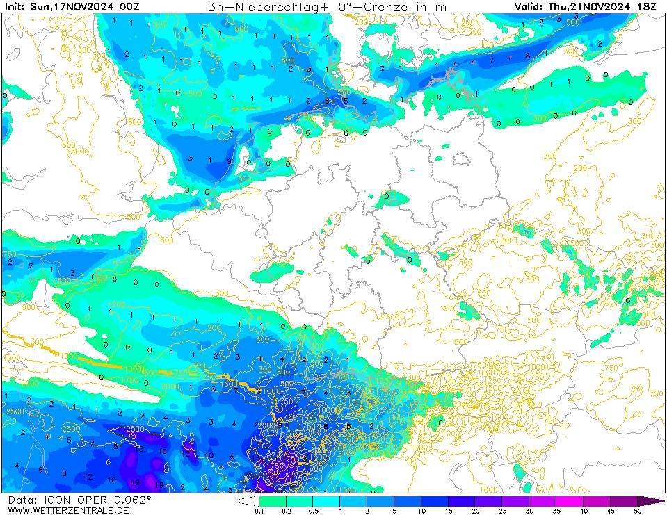 Tempo stabile ancora oggi e domani, in seguito è atteso un peggioramento con aumento della ventilazione e deboli precipitazioni. «Occhi puntati a giovedì ma il favonio è sempre in agguato - dice l'esperto Gianluca Bertoni - Per il modello icon (in foto, ndr) potrebbe scapparci qualche fiocco di neve fino a quote basse. Tuttavia, la situazione è ancora troppo incerta e passare da neve/pioggia a vento è un attimo».