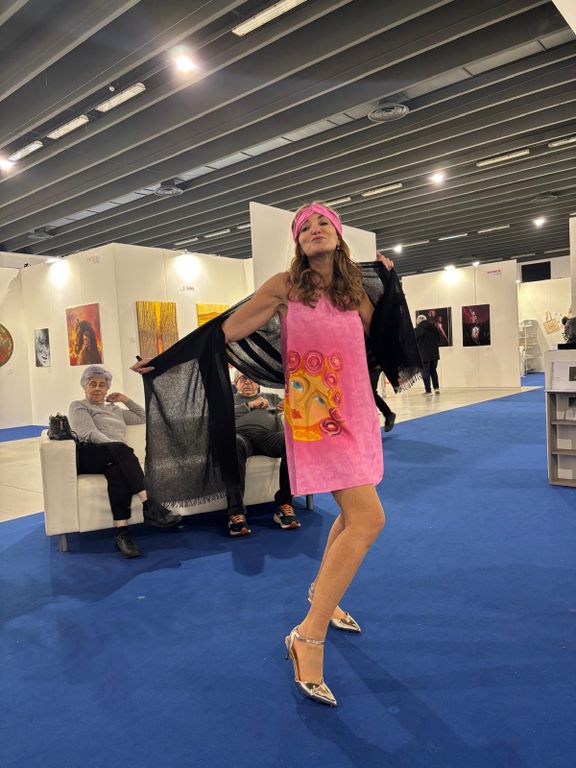 Sì perché le opere della ex olimpionica di nuoto sincronizzato, nonché chirurgo e artista, sono diventati abiti. Non a caso l’invito a “nutrirsi di arte, vestirsi con essa” non è casuale.