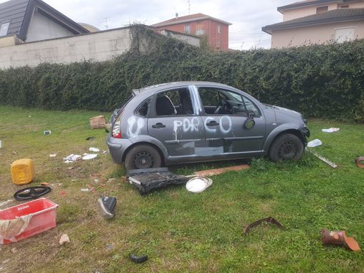 Degrado chiama degrado. Da tempo nello slargo tra via Piombino e via Monte Grappa a Busto Arsizio c’è un’auto abbandonata. E, di recente, qualcuno ha pensato bene di deturpare ulteriormente il mezzo, già abbondantemente danneggiato, con scritte e disegni volgari. Svastiche, l’immancabile simbolo fallico e una bestemmia sulla fiancata.
