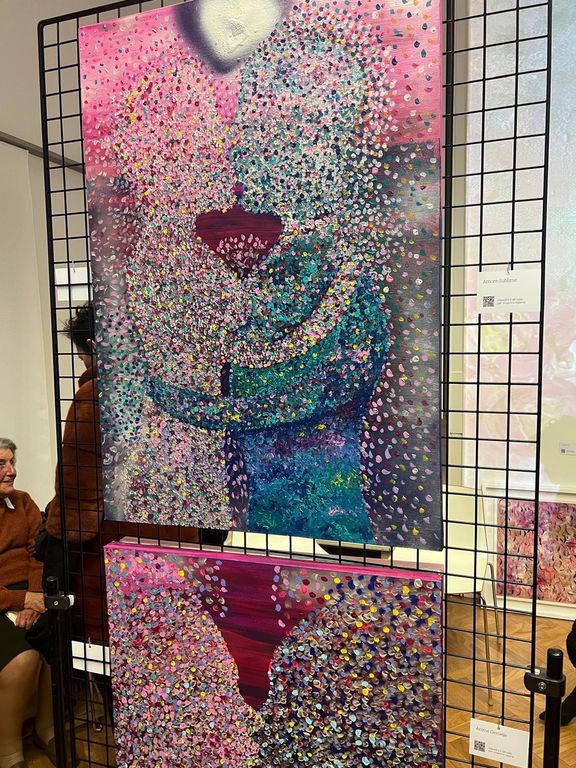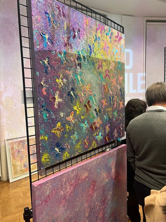 «Il messaggio che vorrei dare con queste opere non è di soffermarsi sulla violenza: quella l’ho già elaborata, e lo capite da questi colori. Sono i colori della rinascita, un pensiero di speranza e di positività, perché solo dalle ceneri si può ritornare a vivere. E la forza dell’amore vince su tutto».
