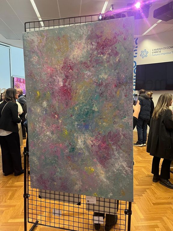 Vicino a lei il collega artista Oliviero Passera e l’equipe di Amico Fragile OdV-ETS, l’associazione di volontariato varesina che si dedica instancabilmente all’assistenza socio-sanitaria e alla tutela dei diritti delle persone vittime di abusi.
