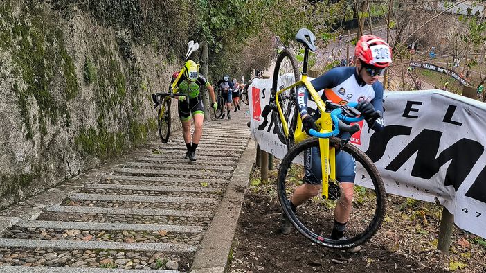In trecentoquarantasette su e giù per i saliscendi di Solbiate Olona. Dalla categoria over 60 a quella Esordienti, dalla classe 1967 ai giovanissimi 2011. E se questi ultimi sono gli unici a non essersi cimentati nella salita delle scalette, tutte le altre categorie hanno affrontato l'iconico tratto del percorso che da ben più di mezzo secolo caratterizza il Ciclocross di Solbiate Olona. Ottantadue gradini - circa la metà di quelli che portano da piazza Gabardi fin giù in valle – sono il “fiore all'occhiello” di una competizione che è sapientemente organizzata dal G.S. Solbiatese e che sta tornando a essere un appuntamento di grido nel panorama del ciclocross italiano dopo i fasti della seconda metà del ventesimo secolo. I campioni di un tempo, con gli iridati Renato Longo e Daniele Pontoni nomi più titolati dell'albo d'oro della competizione, ora hanno degni eredi, anche e soprattutto tra i giovanissimi. Da questa sessantatreesima edizione (IV Trofeo Emilio Saporiti alla memoria) la manifestazione è nuovamente gara nazionale. Non è un caso, quindi, che nonostante la concomitanza con la gara di Padova, ai nastri di partenza di Solbiate Olona gli iscritti fossero oltre un centinaio in più rispetto al 2023.