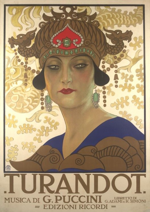 Grande spazio viene offerto alle opere del cartellonista triestino Leopoldo Metlicovitz (1868-1944), all’epoca direttore artistico della Casa Editrice Ricordi. L’artista fu legato a Puccini da una salda amicizia e dalla loro collaborazione scaturirono invenzioni straordinarie, da Madama Butterfly (1904), ancora legata alla tradizione cartellonistica ottocentesca di matrice pittorica, fino alla splendida Turandot (1926), emblema del nuovo linguaggio Art Déco.