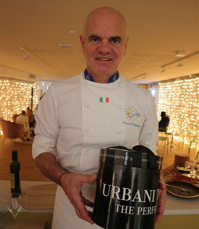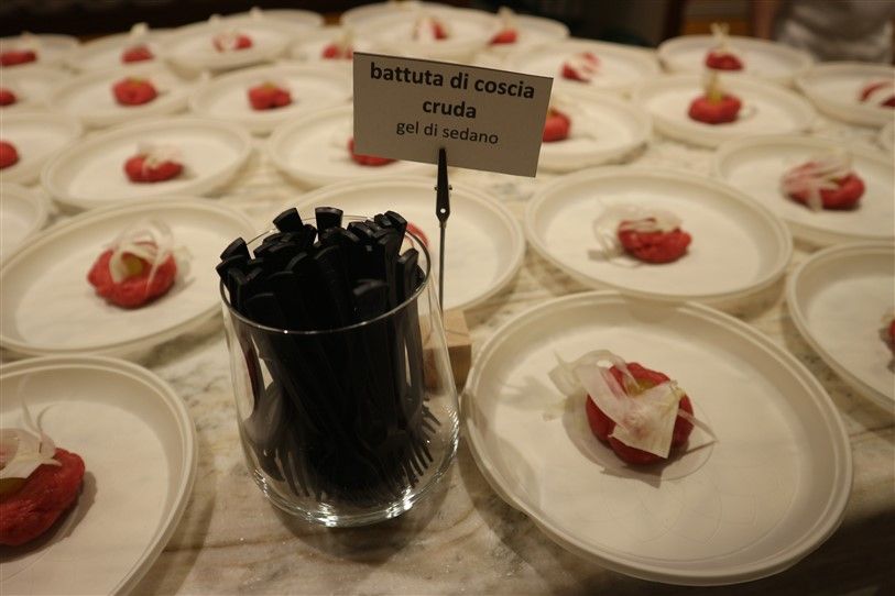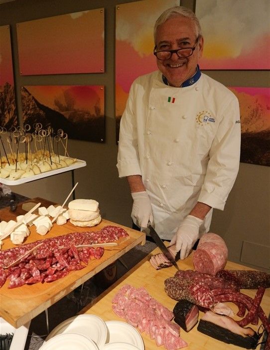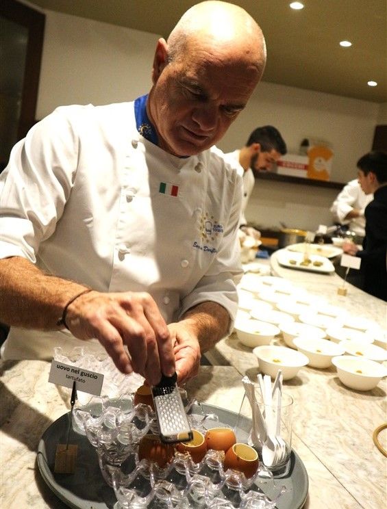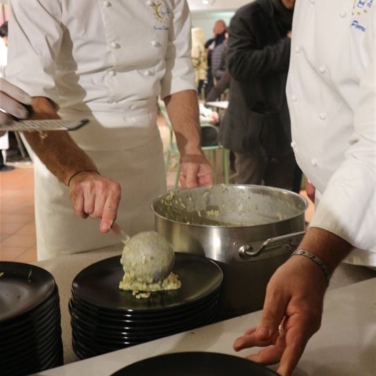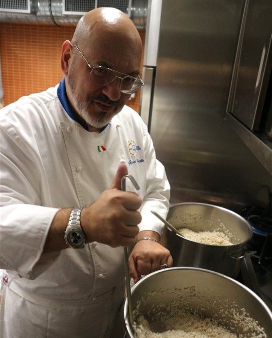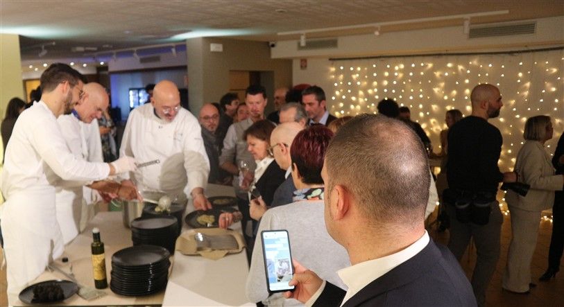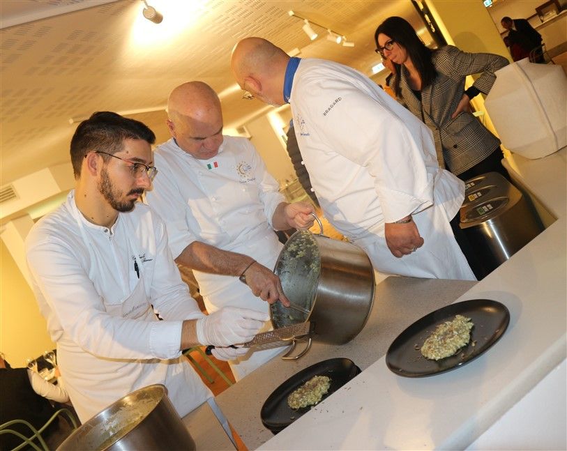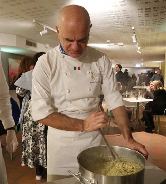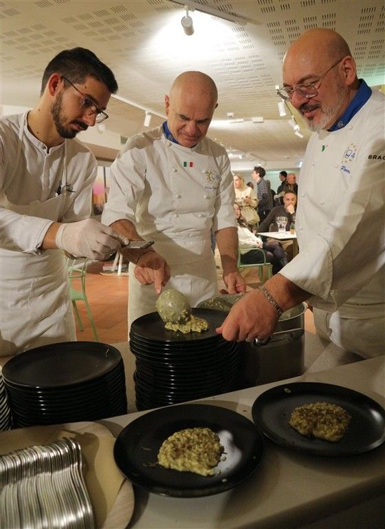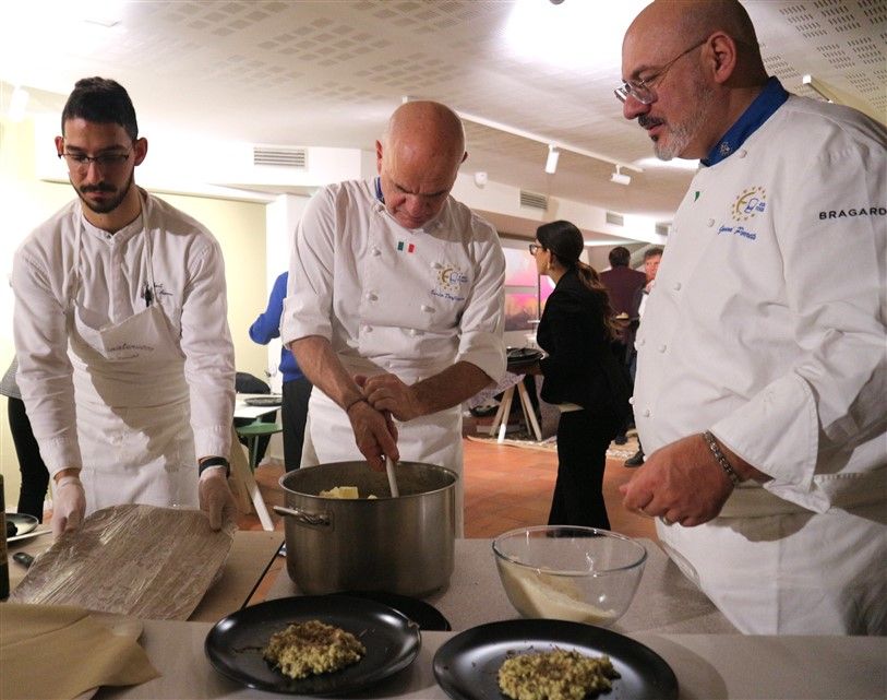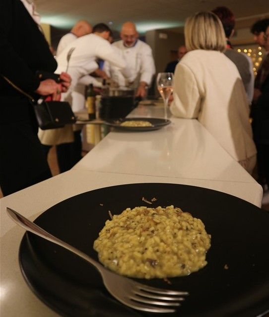 Il riso, mantecato in diretta di fronte al pubblico, ha catturato l'attenzione degli ospiti, che sono rimasti letteralmente affascinati dal gusto e sapore intenso del piatto. In apertura della serata, lo chef Valter Ferretto, rappresentante piemontese di Euro Toques e da oltre 35 anni stella Michelin, aveva deliziato i partecipanti con i migliori salumi e formaggi delle Langhe, insieme a preparazioni gustose come la battuta al coltello e l’uovo tartufato.