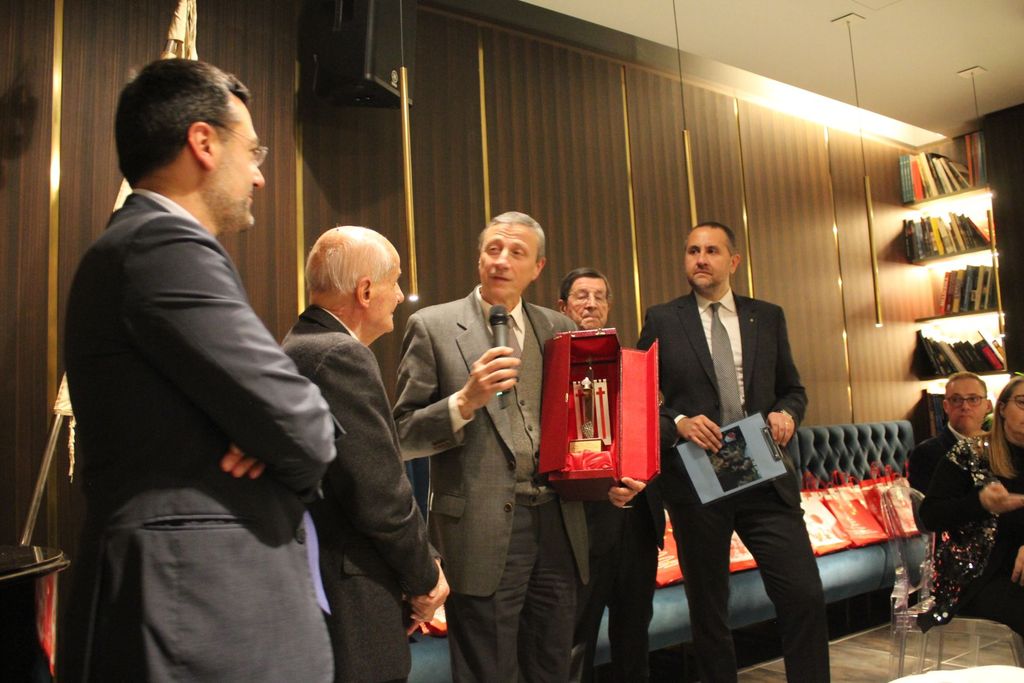 Durante la cena, uno dei momenti più toccanti è stata la cerimonia di spillatura dei nuovi soci, un rito che simboleggia l’ingresso ufficiale nella grande Famiglia Legnanese. Quest’anno, il Presidente Bononi ha dato il benvenuto a cinque nuovi membri, tutti spillati dai rispettivi presentatori: