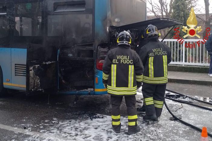 FOTO. Pullman prende fuoco, l'autista spegne le fiamme in tempo