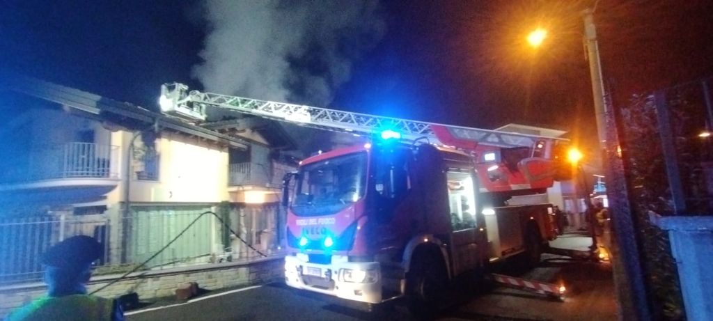 FOTO. Tetto in fiamme a Gavirate, scatta l'allarme. Sul posto diversi mezzi dei vigili del fuoco