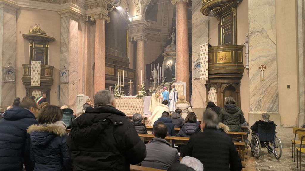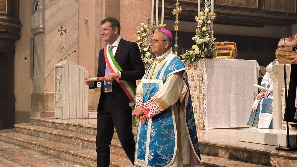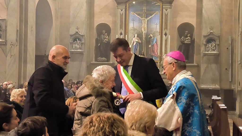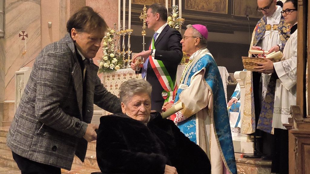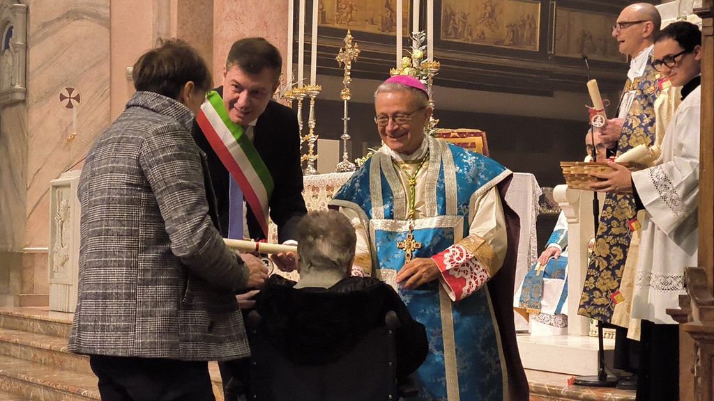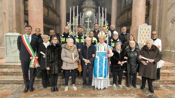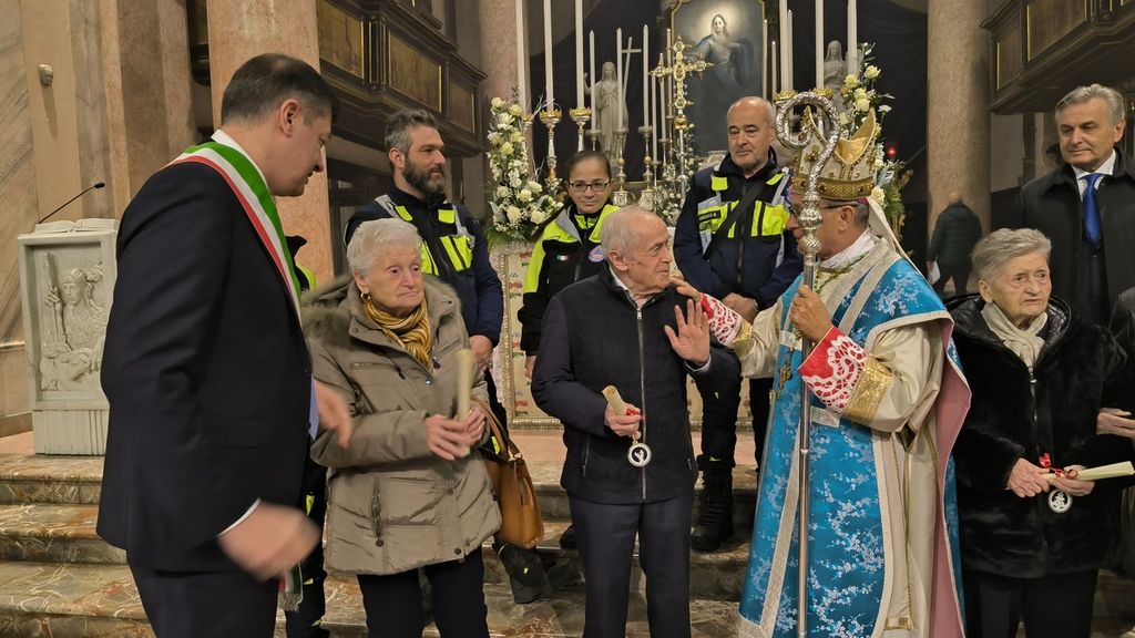 Dopo aver ricordato l'importanza della figura della Madonna, «piena di grazia» come tramandato dalla preghiera a lei dedicata, il vescovo ha accompagnato il sindaco Pietro Zappamiglio durante la consegna dei riconoscimenti a chi ha festeggiato i diciotto lustri nel corso di questo 2024.