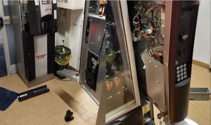 L'azione dei ladri nella sede della Croce Azzurra di Caronno Pertusella (foto dai social dell'associazione)
