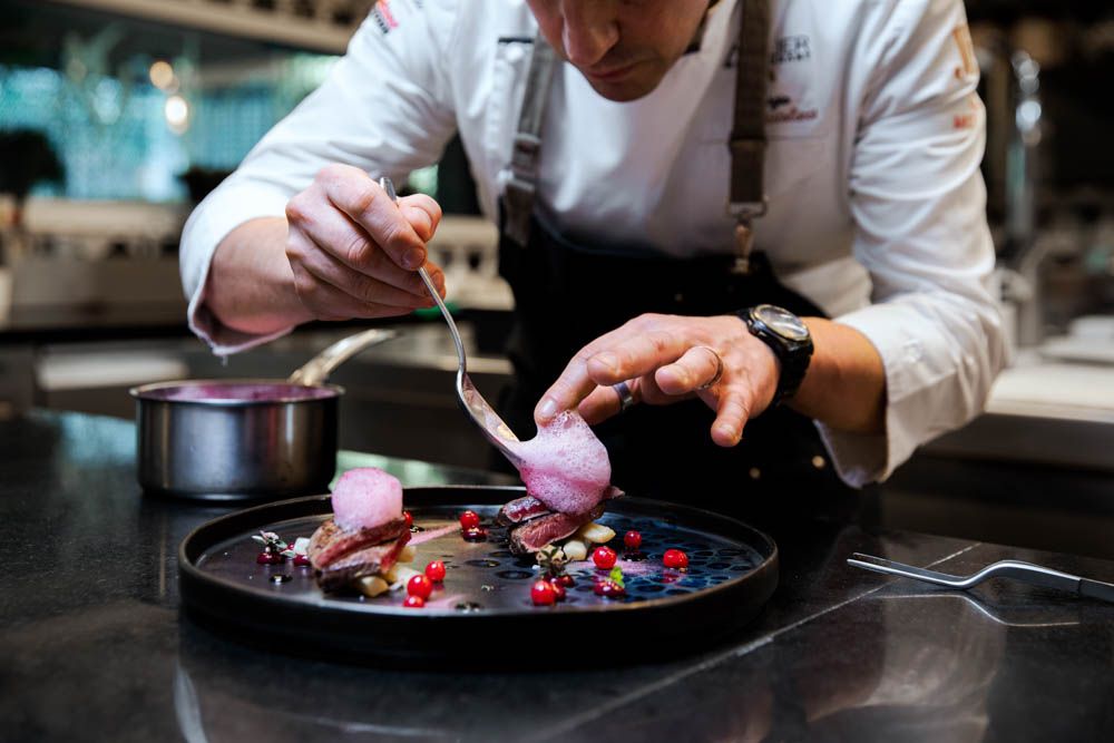 Ciò che non può mai mancare è la passione: “Il mio lavoro mi ha dato tutto”, dice chef Bartolucci. “Per avere successo, la cosa più importante è esserci sempre: io sono il primo ad arrivare e l’ultimo ad andare via. Abbiamo deciso di mantenere pochi posti in Atelier (28, ndr), ma a volte è più difficile che cucinare per cento persone: tutto deve essere di altissimo livello, espresso, le cotture devono essere precise, i piatti sono molto elaborati, il pane viene cotto al momento. È una vera e propria cerimonia”.