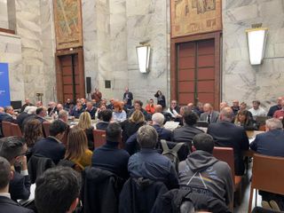Presente il ministro Adolfo Urso, oltre alle varie istituzioni territoriali come il presidente della Provincia di Varese Marco Magrini, il sindaco di Biandronno Massimo Porotti e ovviamente i rappresentanti di Fim Cisl, Fiom Cgil e Uilm Uil, oltre ai coordinatori della Rsu di Cassinetta.