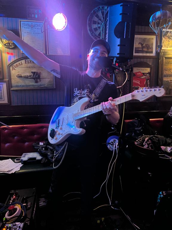 A sostenere il gioco del Maestro è suo cugino William Moretti, frontman del collettivo, un animale da palco immerso in un mix di suoni e luci che ne amplifica l’adrenalina. La nota pungente di questo collettivo che sprona e incita il pubblico all’azione. Gli avventori applaudono, battono le mani sui tavoli a tempo di musica, cominciano a far dondolare il corpo, segno che ormai non manca molto a lasciarsi andare, abbandonarsi a quell’energia pura che fa scaricare la pesantezza della settimana per togliere i freni inibitori del weekend. A quel punto interviene Emanuele Volpi “lo sbarbatello” del gruppo che però sa il fatto suo e che davanti a sé sta tracciando una strada maestra nel mondo della musica con la sua elettrica. Come il peperoncino nella mostarda, scalda gli amplificatori con i suoi riff taglienti e assoli febbricitanti rendendo incandescente il Donegal.