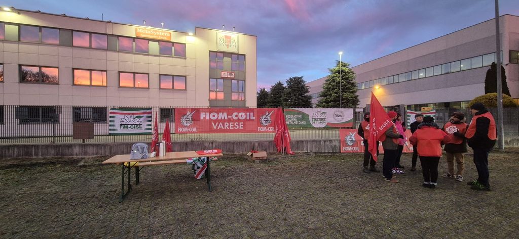 Sciopero con presidio davanti ai cancelli questa mattina, 16 dicembre, alla Meta System di Mornago, azienda attiva nel settore automotive di proprietà asiatica e che ha il quartier generale a Reggio Emilia, dove lavorano 450 persone e dove sono in atto proteste ad oltranza.