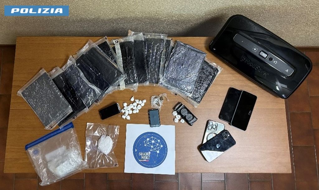 Un 26enne albanese e un 24enne italiano in manette dopo le indagini della Squadra Mobile che, martedì scorso, ha pedinato un'auto con a bordo i due sospetti scoprendo all'interno una scatola con alcune dosi di droga e denaro contante. La perquisizione estesa in casa ha portato al rinvenimento dell'ingente quantità di sostanza stupefacente