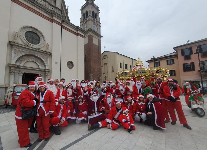 Il rombo dei motori si è unito al tintinnio delle campanelle questa mattina, quando i vespisti hanno fatto il loro ingresso in centro agghindati da Babbi Natale.