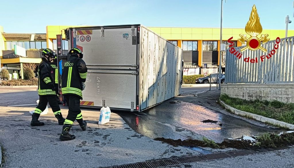 Il sinistro è avvenuto attorno alle 10 di stamattina in via Battisti dove sono intervenuti i vigili del fuoco che sono riusciti a svuotare metà circa del serbatoio che si rotto nell'impatto. Ferite lievi per il conducente del mezzo pesante