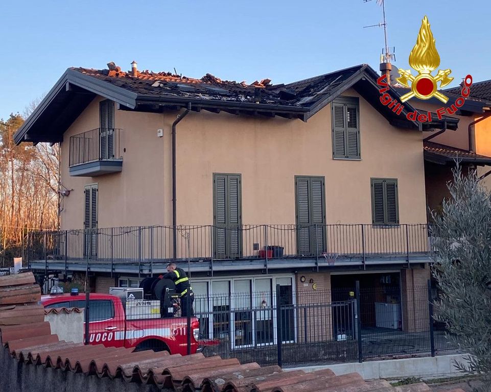 Tetto di un'abitazione di Sumirago prende fuoco: in azione i vigili del fuoco