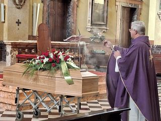 Sulla sconfitta della morte: «Se fosse in grado di parlare, Piero ci direbbe che oggi è un giorno speciale, quello in cui compie 50 anni di matrimonio. Celebra l’anniversario con sua moglie, vivrà questo momento con la sua sposa». Ha usato i verbi al presente e al futuro, don Giorgio, sottolineando un legame che la separazione dovuta alla dipartita non dissolve. Sulla scorta del Vangelo di Giovanni: «Non sia turbato il vostro cuore».