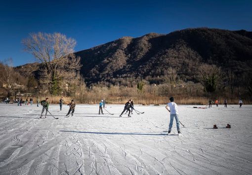 Anche se “Pissabö” e “Pissavacch” delle grotte di Valganna stentano a diventare stalattiti di ghiaccio per le temperature non proprio invernali di questa fine d’anno, c’è gioia sulla pista di Ganna, con il canneto dorato a fare da corona e i sorrisi dei bimbi che lanciano il disco in minuscole porte, come testimoniano le belle immagini del nostro Gianluca Bertoni, con il ghiaccio che specchia l’azzurro del cielo.