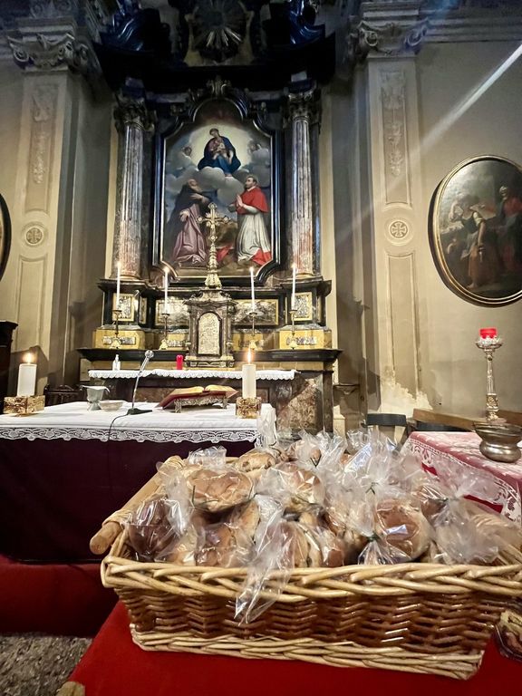 È un viavai silenzioso nella chiesa di Sant'Antonio Abate, aperta per questa giornata di festa. È vero, le messe non sono più affollate come una volta, ma durante la cerimonia la porta si apre ripetutamente: una persona entra per dire una preghiera e prendere i panini dolci dei ragazzi dell'Enaip, dopo la benedizione (LEGGI QUI).