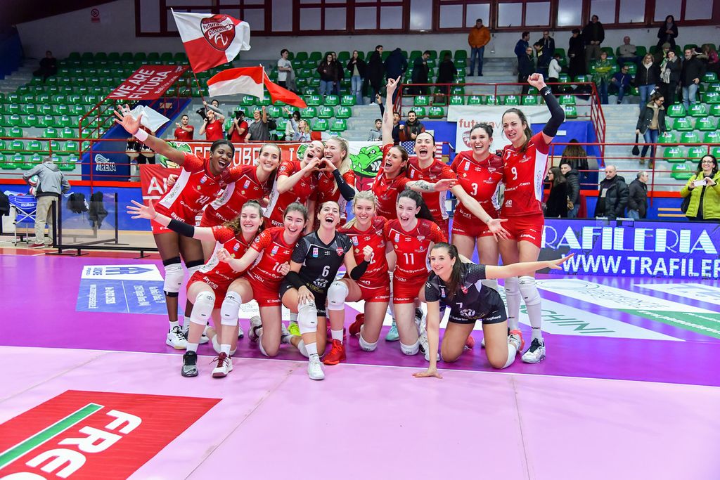Riparte il punto a punto tra le due squadre con un primo timido tentativo di fuga delle padrone di casa di (9-7). Due ace a fila di un’immensa Rebora danno consistenza all’allungo biancorosso (12-8) mentre un paio di errori delle neroverdi ed un’abile giocata di Zakościelna sulle mani del muro ospite avvicinano al traguardo le cocche (17-12). La schiacciatrice polacca firma anche il 20-13, il successivo muro di Rebora profuma tanto di vittoria e per la squadra di coach Beltrami è solo questione di attendere qualche minuto: fino a quando la battuta di Salvatori finisce di poco out dando il via alla festa della Soevis Arena.