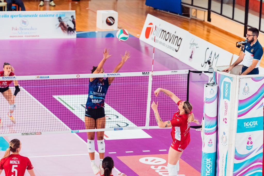 Lunghissimo il viaggio, piuttosto veloce il match, con Busto Arsizio brava a dettare subito il ritmo nel primo set e poi a tenere a bada le abruzzesi, impedendo a Ndoye e compagne di girare l’inerzia della gara. A dispetto di una ricezione con qualche difficoltà, le biancorosse aggiustano tutto con un attacco molto efficace (47%), con Sofia Monza brava a distribuire le responsabilità, trovando sempre buone risposte: top scorer è Alyssa Enneking con 16 punti ed un lussuoso 66% offensivo, seguono Elisa Zanette con 15 punti (44%) e Sofia Rebora con 11 (40%, 3 ace e 4 muri per il solito ricco tabellino). Buono anche il lavoro nei fondamentali di battuta (7 ace) e muro (14 totali).