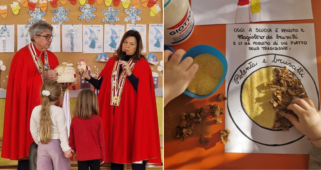 Dopo l’incontro con i due rappresentanti del Magistero, che si sono anche confrontati con la cuoca della scuola sulla ricetta dei bruscitti, a Carnevale verrà rinnovato l’invito al Tarlisu, la maschera cittadina.