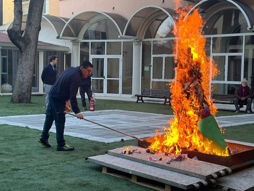 Un'altra tradizione rispettata nel rigoroso protocollo della Giöbia a Busto Arsizio: il primo falò è quello dell'istituto La Provvidenza. Nel primo pomeriggio il fantoccio della Rsa è stato dato alle fiamme, per liberare la speranza e la festa. Un fantoccio saggio che dice: "Se il cibo continui a sprecare, il mondo in malora fai andare"