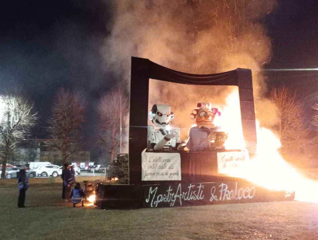 «L'intelligenza artificiale sta facendo passi da gigante. È quella normale che scarseggia». Questo il messaggio della Giöbia di Solbiate Olona, che ha visto affiancati nell'area feste di via San Vito due enormi fantocci, uno a forma di robot e uno con le sembianze di una vecchietta che sorseggia del tè caldo (e la tazza fumava davvero). L’evento è stato organizzato dalla Pro Loco con i MastrArtisti, artefici della creazione grande e coloratissima, di notevole fattura. Non senza la collaborazione degli Alpini, della Protezione civile e il patrocinio del Comune. I bambini hanno potuto bruciare i loro bigliettini e hanno ricevuto caramelle in regalo. Oltre ad assistere al grande falò, il pubblico ha avuto la possibilità di rifocillarsi con piatti tipici e non solo: risotto e luganega, salamelle, hot dog, patatine, chiacchiere, vin brulè, tè e cioccolata calda.