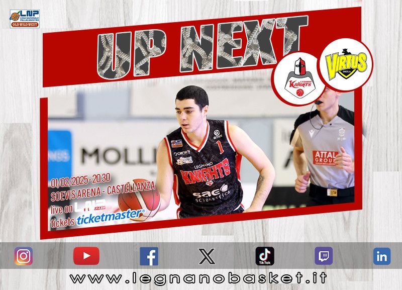 Sabato, alle 20.30, ospite dei Knights sarà la Virtus Imola, squadra con cui Legnano hanno giocato poco più di un mese fa, ma che con il calendario sfalsato, è di nuovo avversaria di attualità. La gara dell'andata porta in dote un dolce ricordo per Legnano che sotto di 13 punti a circa 5' dalla fine, rimontò incredibilmente vincendo una partita che sembrava ormai persa.