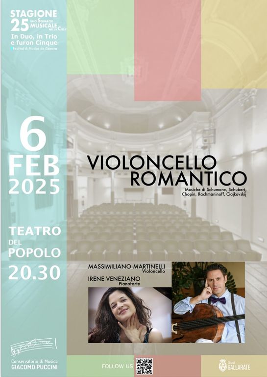 Il Conservatorio “Giacomo Puccini” di Gallarate invita il pubblico al terzo appuntamento della stagione concertistica 2025 con un evento imperdibile: “Violoncello Romantico”, un viaggio musicale attraverso le emozioni più intime e suggestive del Romanticismo europeo.