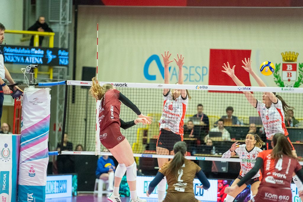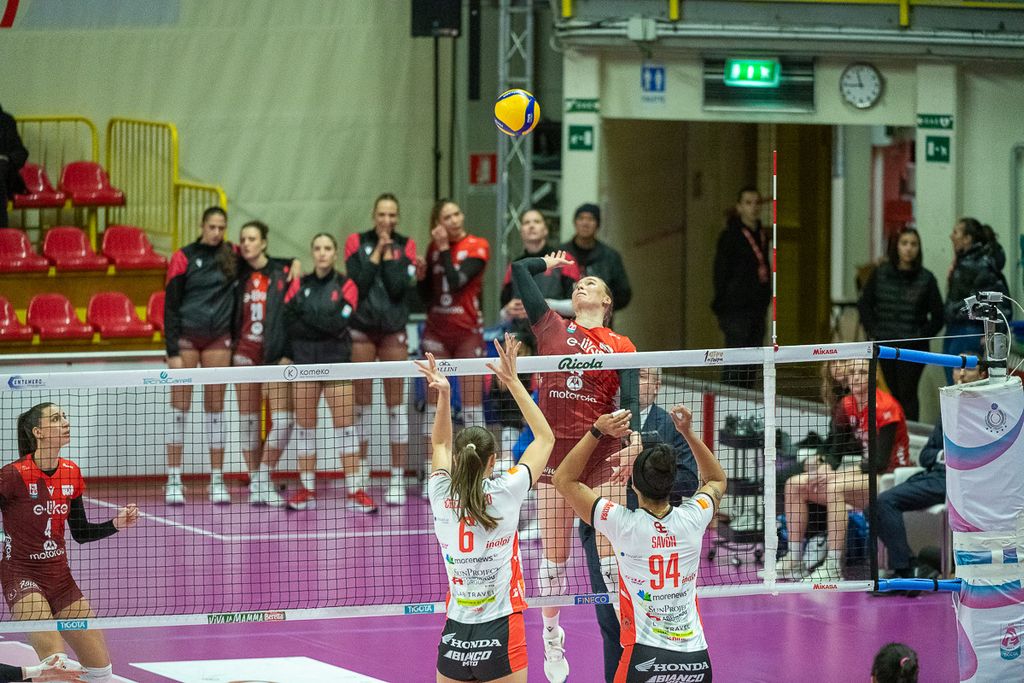 Honda Olivero Cuneo: Colombo ne, Martinez 3, Polder 4, Cecconello 4, Panetoni (L), Scialanca ne, Bjelica 4, Bakodimou 10, Signorile 1, Kozuch ne, Brambilla 4, Camera, Kapralova 12, Sanchez 5. All. Pintus, 2° Aime.
