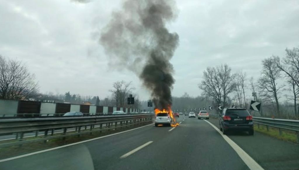 Incidente con auto in fiamme sull'A8 tra Cavaria e Castronno alle 8 di questa mattina: una persona soccorsa e traffico in tilt