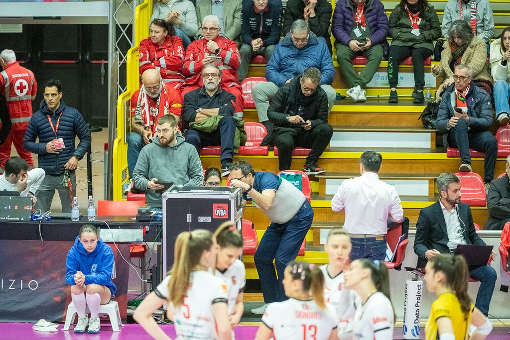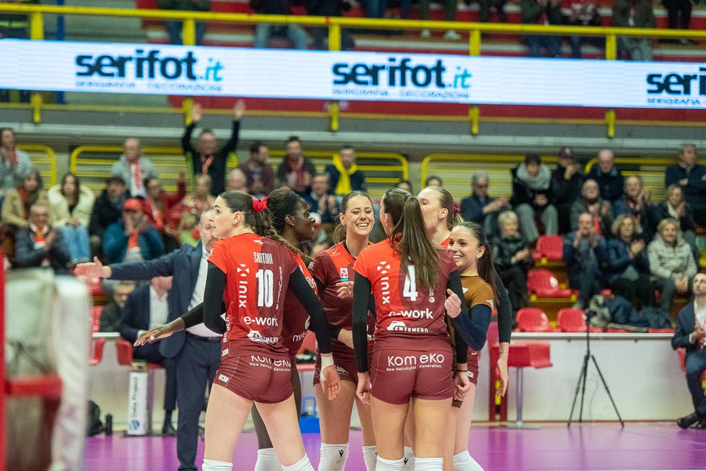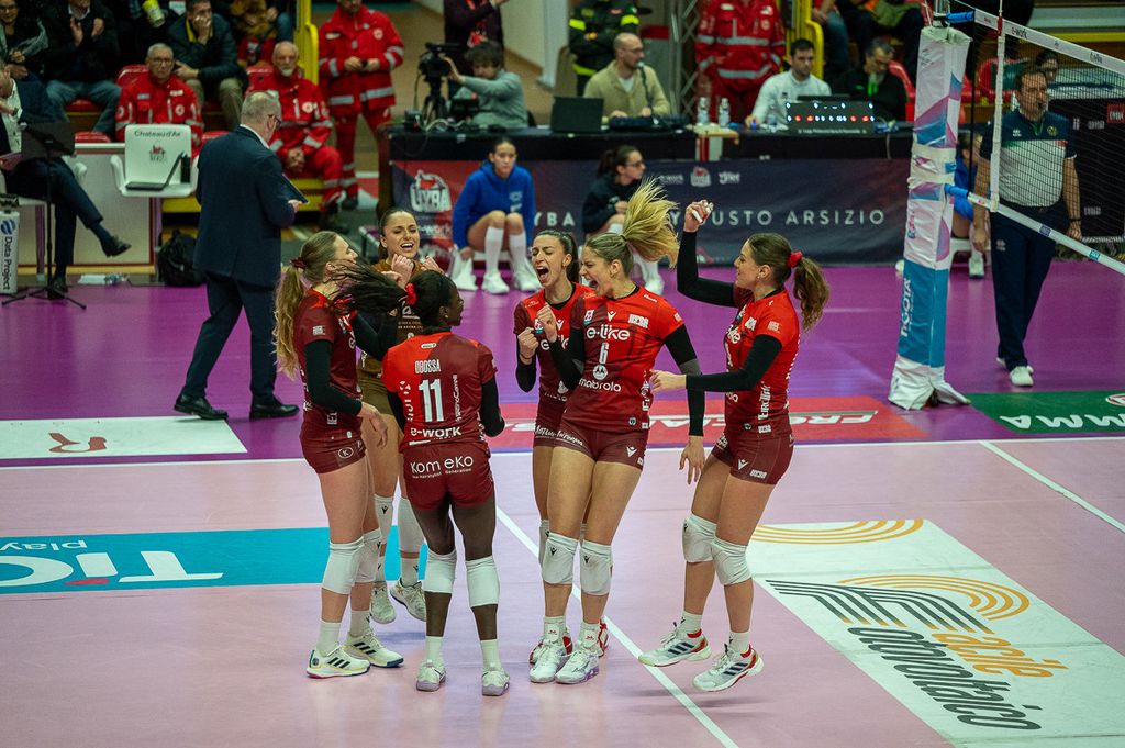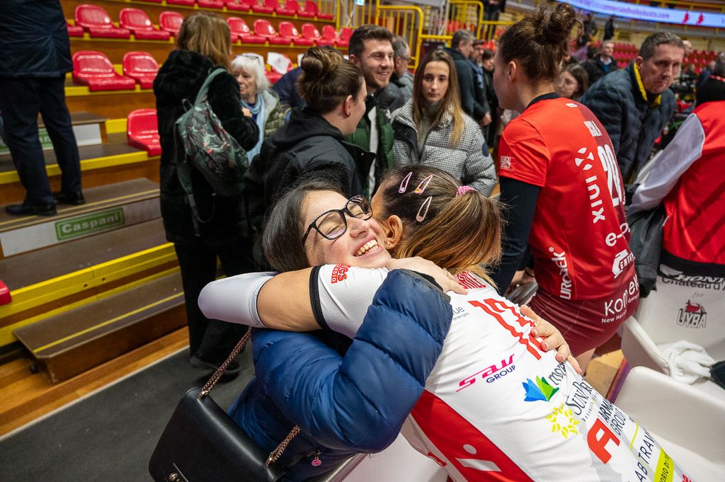 Tanti “cuoricini” a fine partita per la Uyba, che celebra la vittoria su Cuneo con la canzone dei Coma Cose, ormai hit anche nello spogliatoio biancorosso. Nonostante il freddo nel palazzetto a causa dei lavori sulle caldaie, è la squadra di coach Barbolini a scaldare i cuori dei 1.300 tifosi presenti, regalando una serata di sorrisi, immortalata negli scatti di Alessandro Galbiati