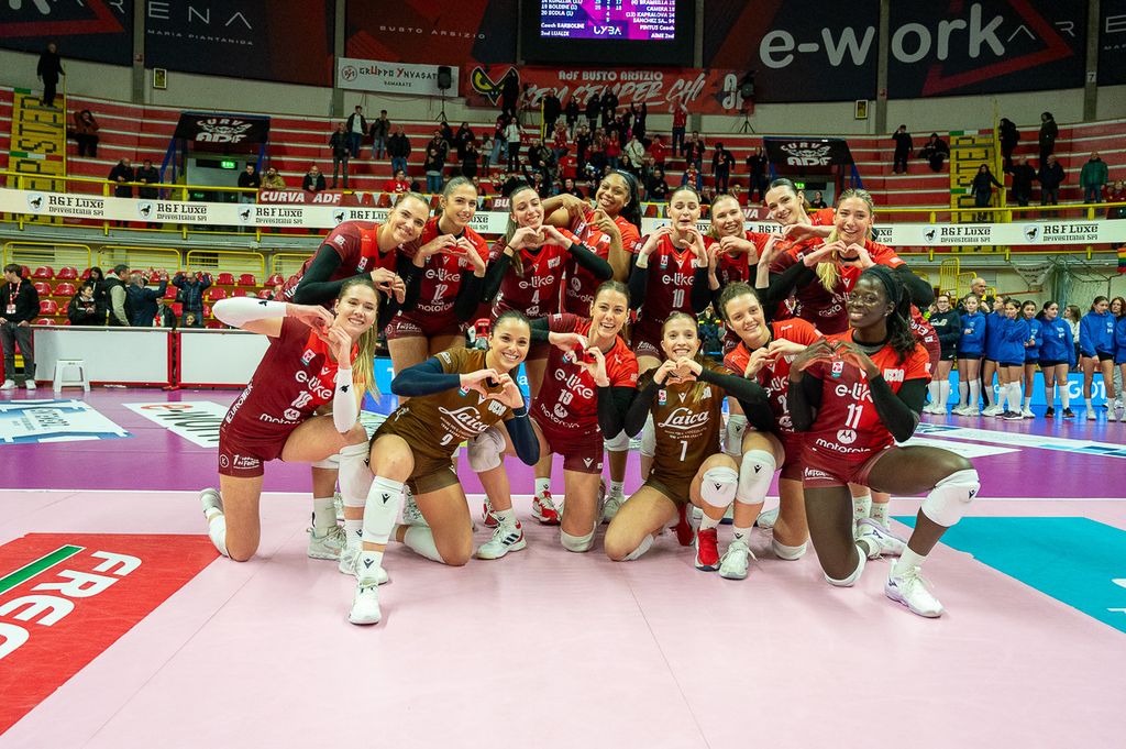 Tanti cuoricini a fine partita per la Uyba, perché la canzone sanremese dei Coma Cose è già una hit anche nello spogliatoio biancorosso. Un modo simpatico e spensierato per celebrare la vittoria su Cuneo nella nona giornata di ritorno (LEGGI QUI), come tradizione vuole nella foto di rito post-partita. Una partita dominata e controllata dalla squadra di Busto, dalla prima all'ultima azione, che ha portato nuove consapevolezze dopo tre sconfitte consecutive. Non solo, la vittoria ha garantito anche punti cruciali in chiave playoff – ormai praticamente blindati, manca solo la certezza matematica – e ha permesso alla Uyba di salire al sesto posto in solitaria, grazie alla sconfitta di Bergamo contro Pinerolo.