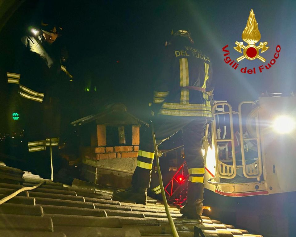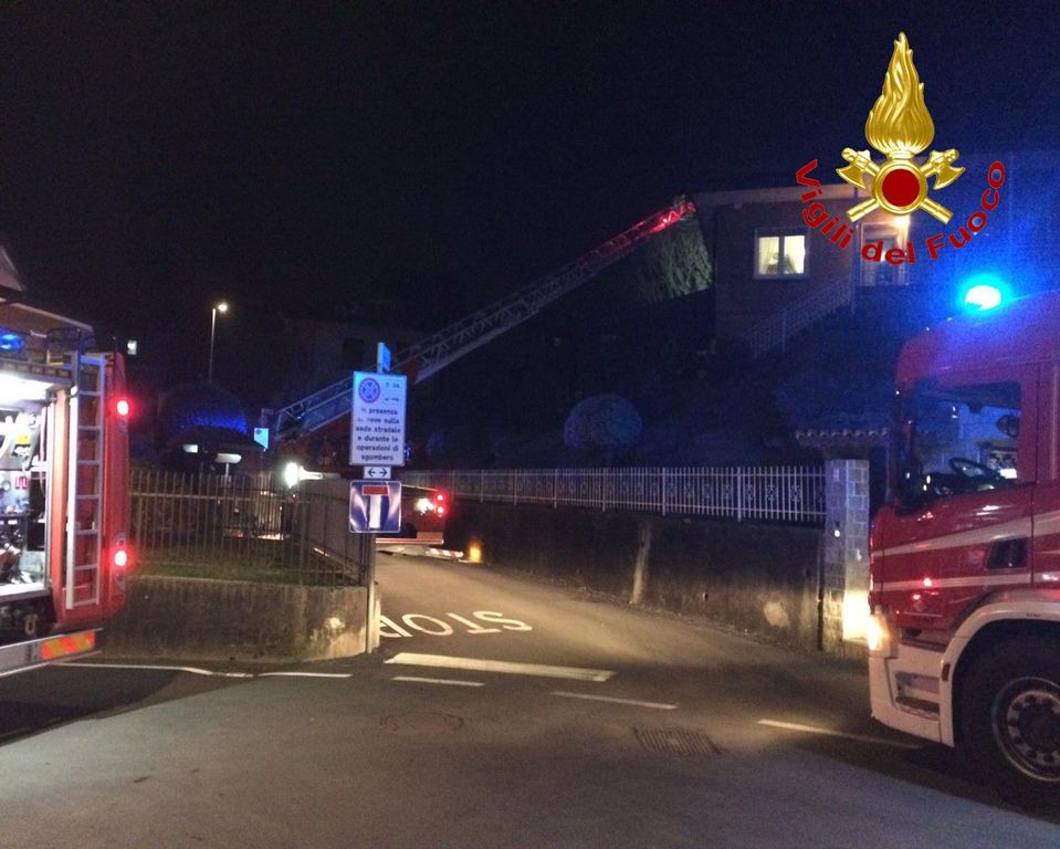 FOTO. Incendio a Buguggiate, canna fumaria in fiamme: intervengono i vigili del fuoco