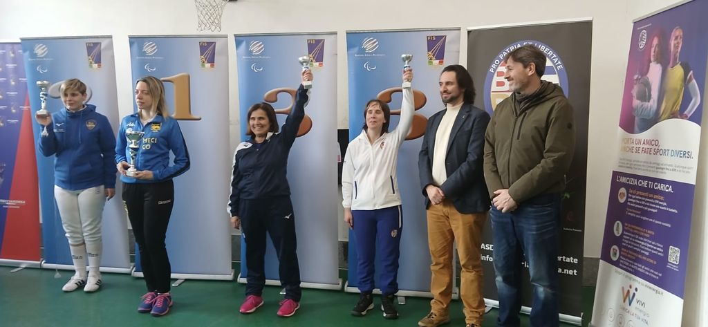 Tra le spadiste non vedenti, si è affermata Silvia Tombolini (Accademia d’Armi Musumeci Greco) che ha battuto per 15-9 in finale Daphne Petrillo (Club Scherma Palermo). Terzo gradino del podio per Simonetta Pizzuti (Capitolina Scherma) e Laura Tosetto (Pro Patria et Libertate Busto).