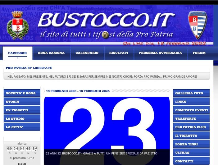 Da quel giorno sono passati ben 23anni: il mondo è cambiato, ma www.bustocco.it, luogo di incontro virtuale dei tifosi della Pro Patria, è ancora online.