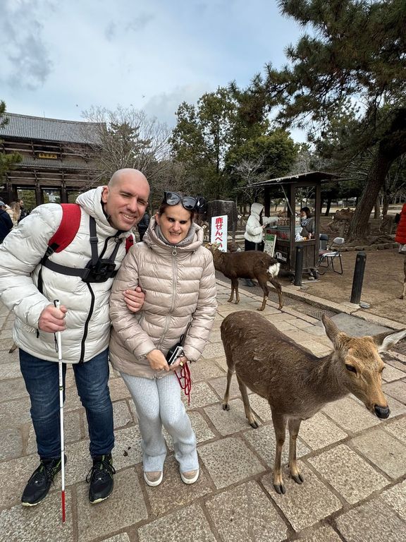 Elena e Roberto hanno esplorato alcuni dei luoghi più iconici del Giappone: dall’attraversamento pedonale di Shibuya ai maestosi templi di Kyoto, dal suggestivo Parco dei Cervi di Nara al Castello di Osaka, fino al Memoriale della Pace di Hiroshima e all’isola di Miyajima, celebre per il suo torii galleggiante. A Tokyo Disneyland, hanno vissuto la magia dei parchi a tema, sperimentando l’accessibilità anche nel mondo dell’intrattenimento.