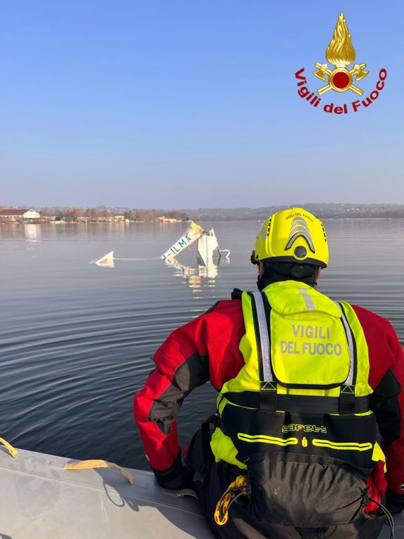 Ancora grave il pilota dell'aliante precipitato nel lago di Varese: è in prognosi riservata. Oggi con l'autogrù il recupero del relitto