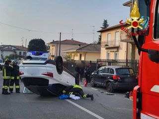 FOTO. Auto si ribalta a Jerago con Orago, illesa la conducente