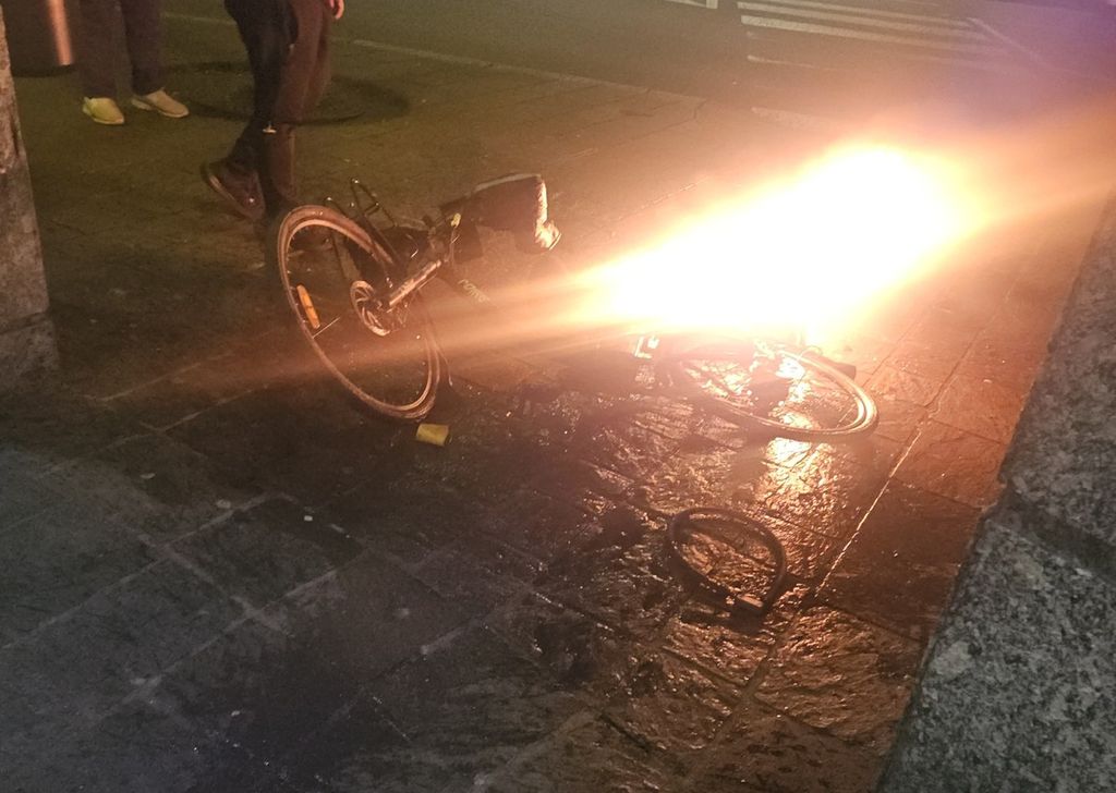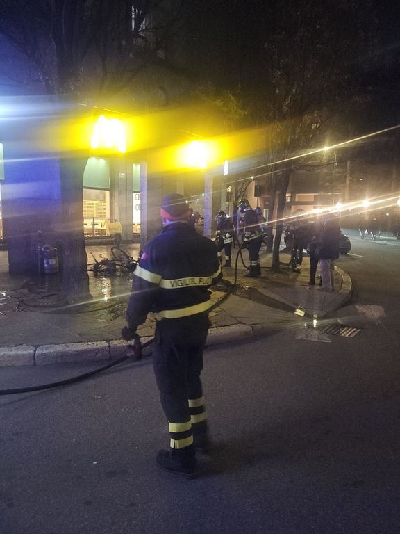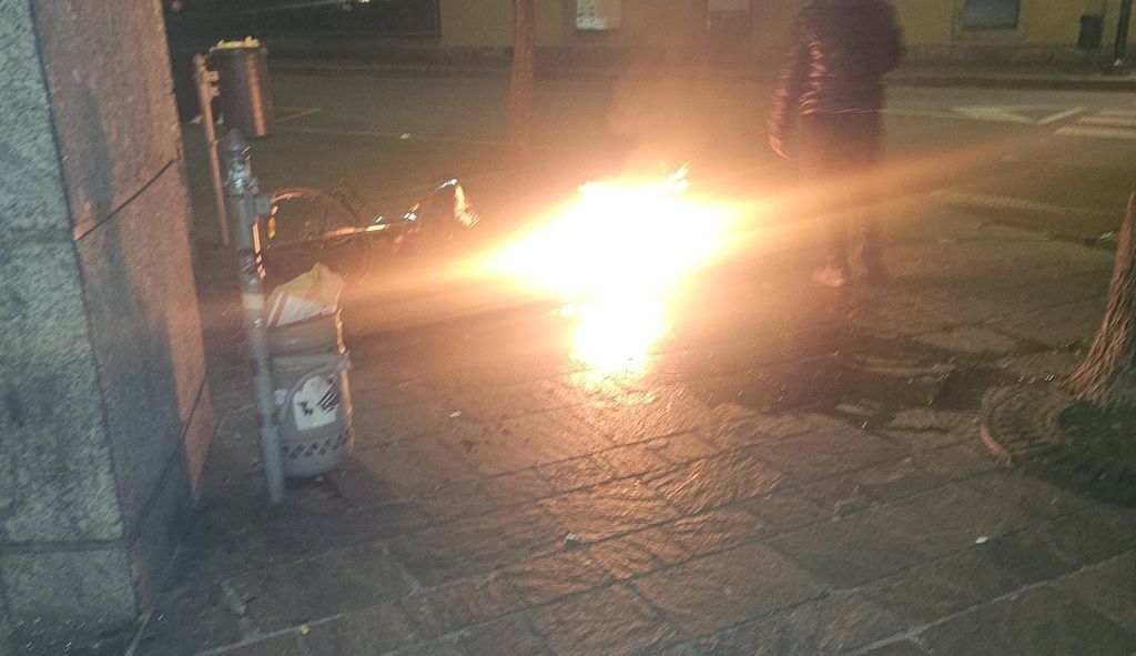 Busto, bici elettrica in fiamme sotto i portici di piazza Garibaldi