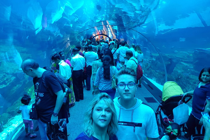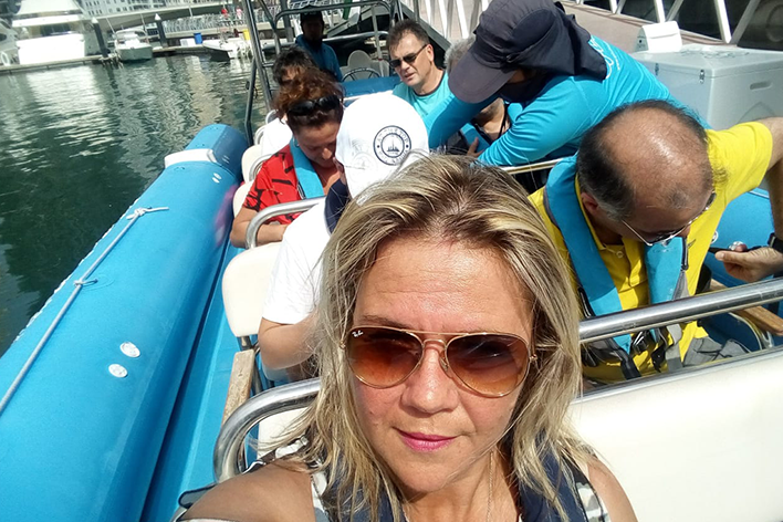 Abbiamo deciso di fare un’escursione in barca per ammirare Dubai da un’altra prospettiva e vedere l’iconico Atlantis The Palm. Il mare era piatto come una tavola almeno all’inizio, in pochi minuti, la situazione è cambiata completamente. Le onde sono diventate altissime e la nostra barchetta, cominciava a essere sballottata da una parte all’altra. Il cielo si era improvvisamente coperto, ero nel panico, volevo “buttarmi giù” dalla barca; nel frattempo Simone, mio figlio, all’epoca alunno del nautico cercava di rassicurarmi. Ma io, nel dubbio, ho pregato tutti i santi possibili, quella mezz’ora mi è sembrata un’eternità!