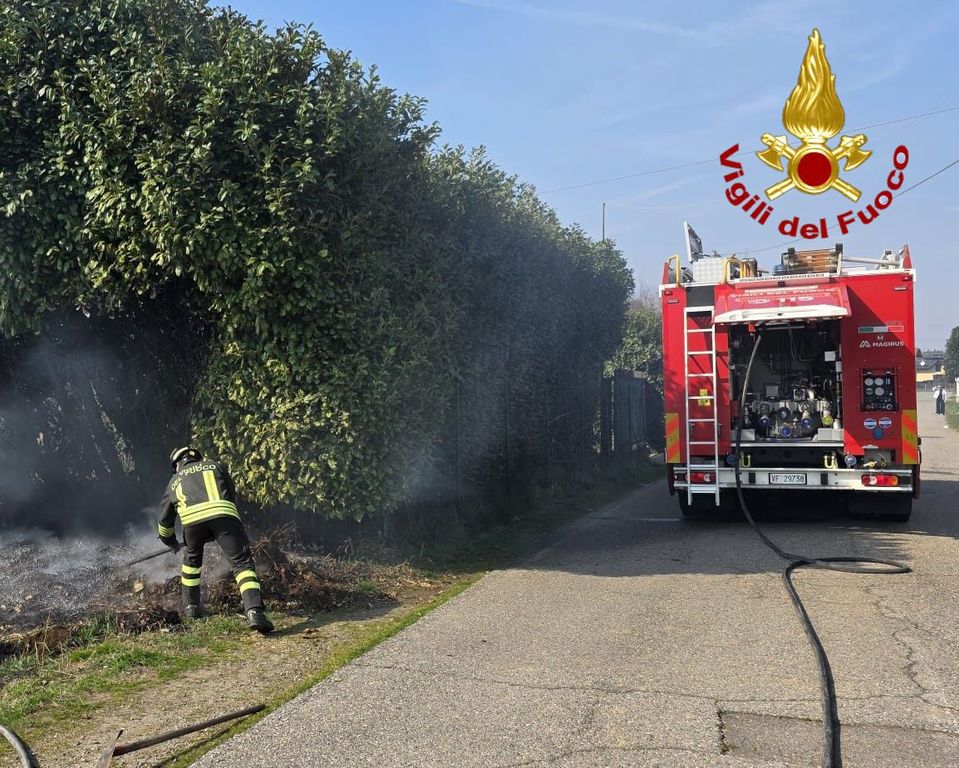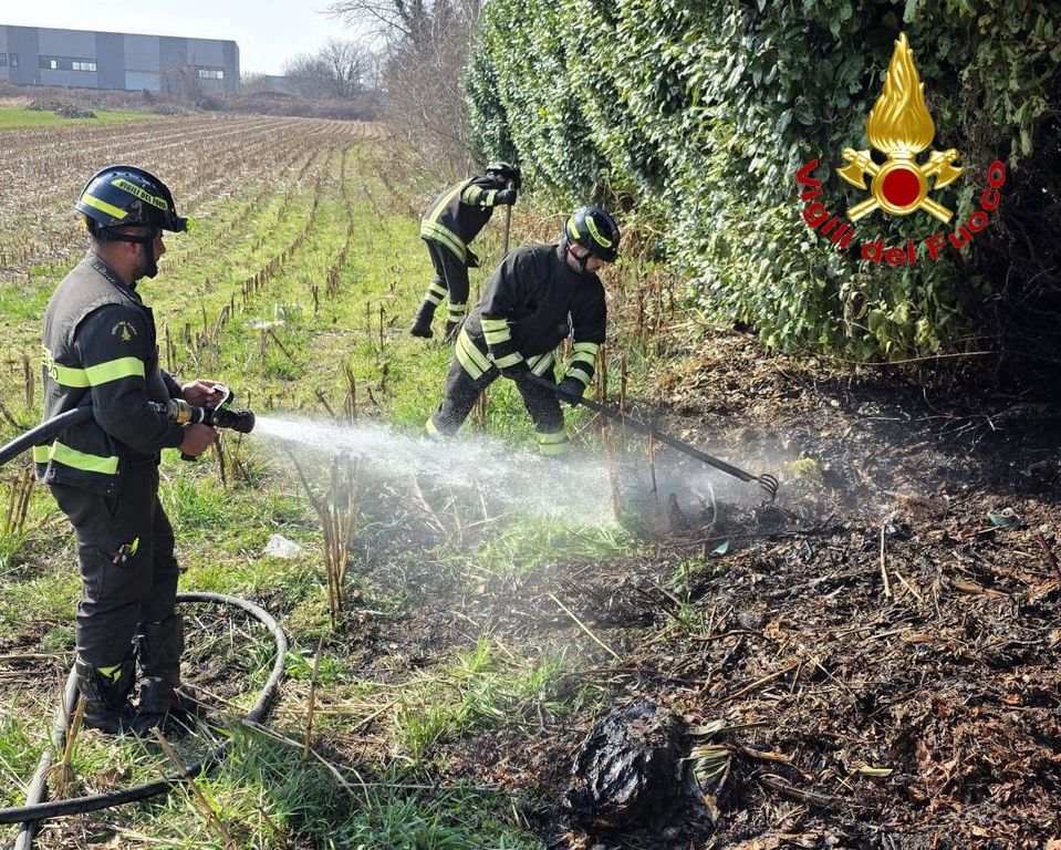 FOTO. Incendio di sterpaglie a Cassano Magnago, intervengono i vigili del fuoco